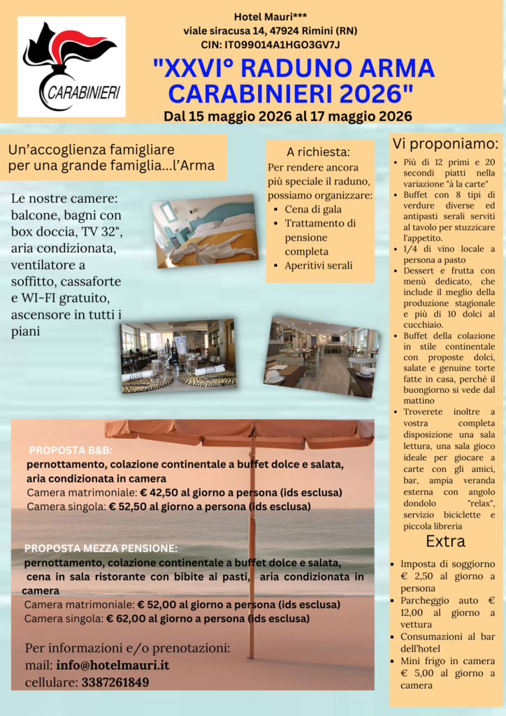 - Camere: tutte servite da wi-fi gratuito ed ascensore. Tutte le camere matrimoniali dispongono di balcone, condizionatore, cassaforte dentro l'armadio, tv color 32 " bagni ristrutturati con box doccia e termoarredo. Nelle singole al posto del balcone vi è un'ampia finestra, ed il bagno presenta la tenda doccia e termosifone;